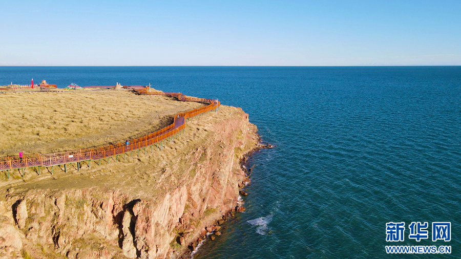 圖為青海湖圣泉灣秋景(無人機照片)。新華網(wǎng) 卡婭梅朵 攝