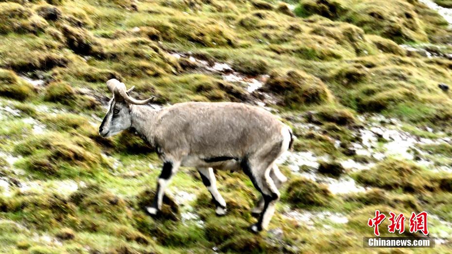 高原深秋,在青海湖北岸的青海省海北藏族自治州海晏縣甘子河鄉(xiāng)境內(nèi),攝影師拍攝到成群巖羊在溫泉濕地游走覓食。畫面中,巖羊“拖家?guī)Э凇痹谏狡律?、風(fēng)雪中奔跑覓食,甚是靈動。據(jù)悉,拍攝到成群巖羊的區(qū)域有一處熱水溫泉,溫泉四季噴涌不竭,水溫達57到60度,所以當?shù)匦纬商赜械男夂?,讓深秋時的草原依然青綠。巖羊是國家二級保護動物,擅長“飛檐走壁”,在地形復(fù)雜的山崖上也能如履平地,青灰色的毛色與巖石顏色極為相近,不易察覺。