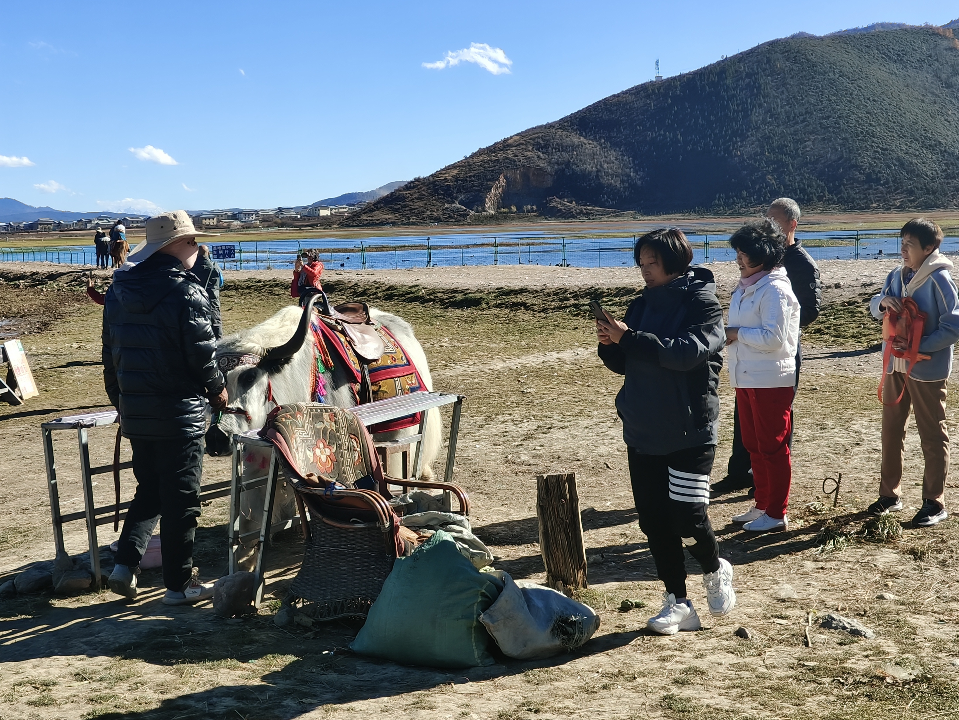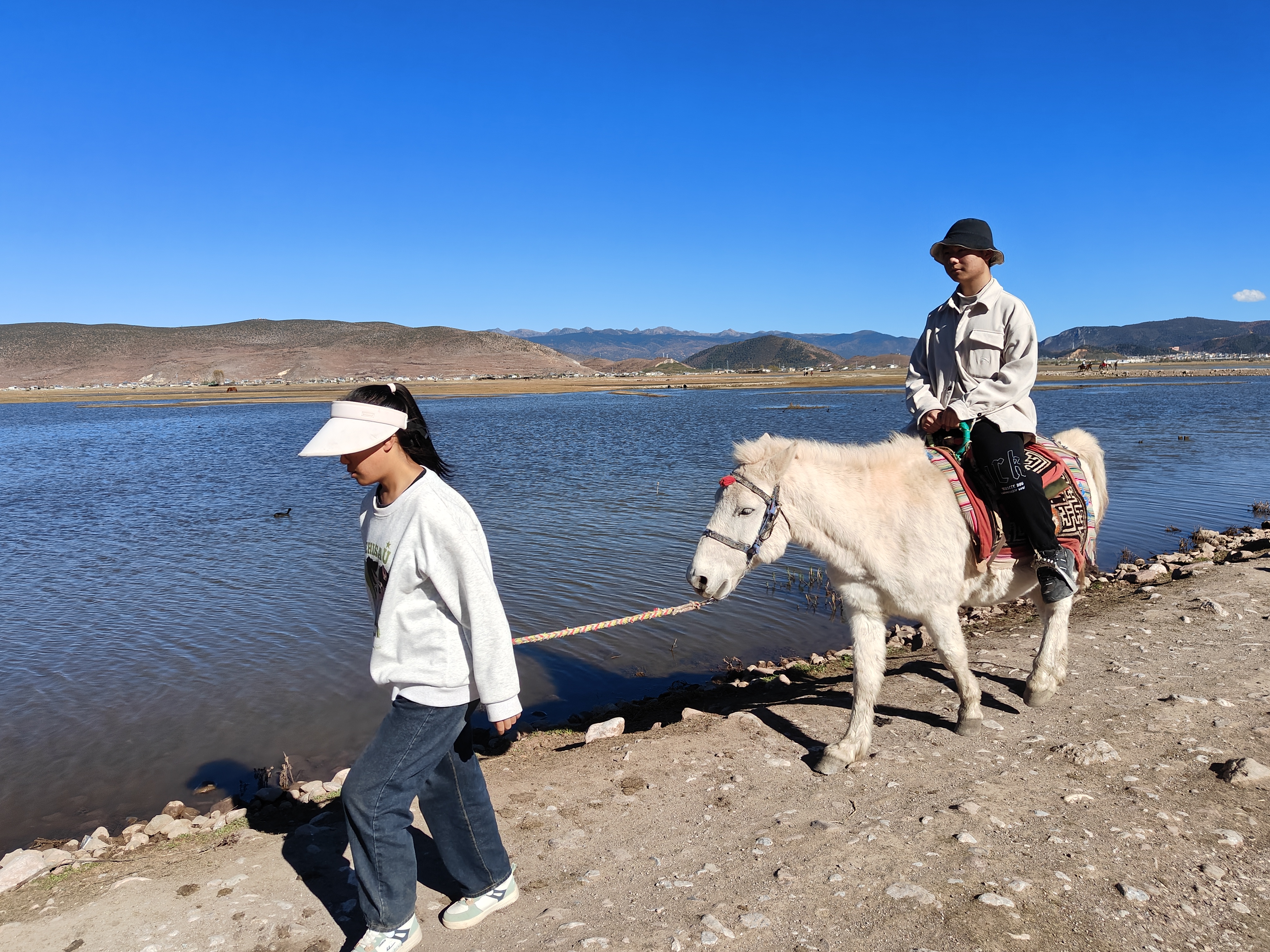 進(jìn)入11月,迪慶的氣溫雖然持續(xù)下降,但并不影響游客們的游玩熱情。納帕海陽光明媚、碧波蕩漾,不少游客選擇到納帕海環(huán)湖游,騎行的、騎馬的、賞景的、拍照的游客絡(luò)繹不絕。圖為游客在納帕海濕地騎馬,體驗藏族馬背文化魅力。