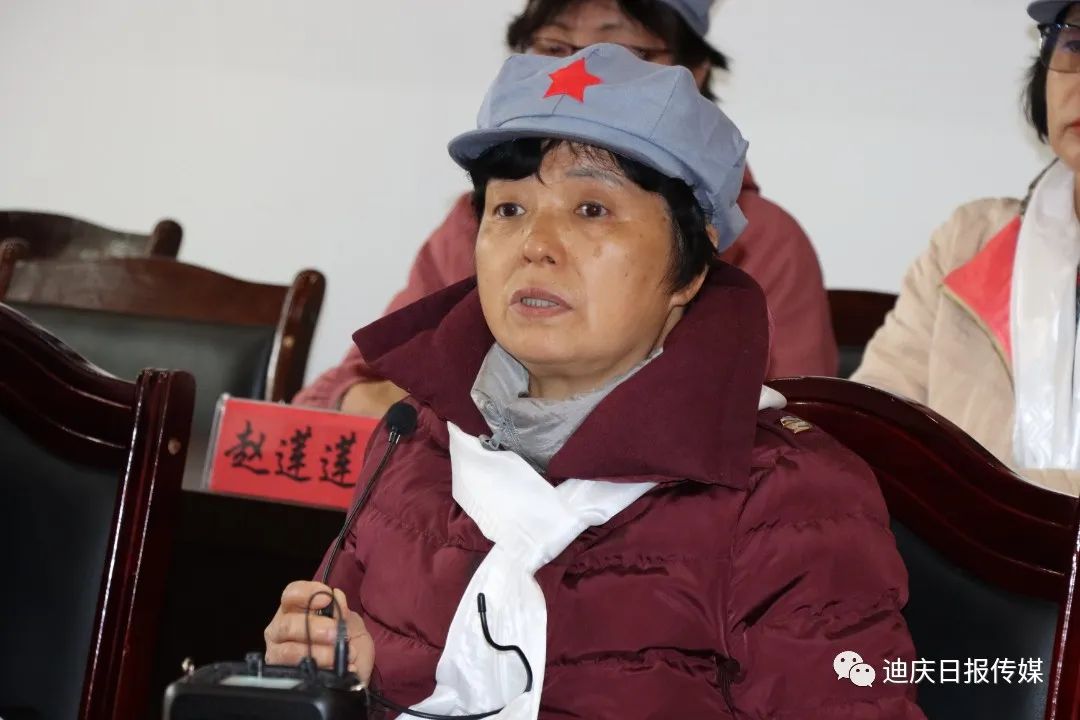 甘祖昌之女甘仁榮回憶起父親,眼中噙滿淚水。其父親甘祖昌,中國人民解放軍少將軍銜,被稱為“將軍農(nóng)民”。1926年參加村農(nóng)民協(xié)會,1927年加入中國共產(chǎn)黨,翌年參加中國工農(nóng)紅軍。在革命生涯中,歷任湘贛軍區(qū)紅軍兵工廠副科長、八路軍第三五九旅供給部軍需科科長、三五九旅供給部副部長、晉綏軍區(qū)三五九旅供給部部長、西北野戰(zhàn)軍第二縱隊后勤部部長、第一野戰(zhàn)軍二軍后勤部部長等職。先后參加了國內(nèi)革命戰(zhàn)爭、抗日戰(zhàn)爭、解放戰(zhàn)爭,為了黨和人民的事業(yè)出生入死、數(shù)次負傷 。中華人民共和國成立后,甘祖昌歷任新疆軍區(qū)后勤部副部長兼供給處處長,兼財務處處長,新疆軍區(qū)后勤部部長。1955年被授予少將軍銜,榮獲八一勛章、獨立自由勛章、解放勛章等 。1957年,甘祖昌在辭去新疆軍區(qū)后勤部部長的職務后,帶著家人回到闊別20多年的家鄉(xiāng),從此開始了29年的“農(nóng)民生涯”。從江西到延安再到新疆,甘祖昌將人生中三分之二的時光都奉獻給了國家獨立和民族解放的革命斗爭中。其母親龔全珍是開國少將甘祖昌夫人、江西省萍鄉(xiāng)市南陂小學原校長。1957年8月,龔全珍隨丈夫甘祖昌回家鄉(xiāng)江西省蓮花縣務農(nóng)并一直從事鄉(xiāng)村教師工作。離休后,又扶貧助學,開辦“龔全珍工作室”服務社區(qū)、群眾。著有紀實作品《我和老伴甘祖昌》。習近平總書記先后兩次親切接見龔全珍,親切地稱她為“老阿姨”。龔全珍曾榮獲第四屆全國道德模范稱號、“感動中國”2013年度十大人物 、全國優(yōu)秀共產(chǎn)黨員 、“感動江西十大教育年度人物”“全國模范退役軍人”等稱號。甘仁榮在座談會上談及父母從小對子女嚴苛的家教,從飯桌上絕不能浪費一粒糧的教育再到了父母離開城市回農(nóng)村搞建設的過往,從幼兒的少不更事,到如今自己親身來到迪慶,感受父輩走過的路,真切地體會到了父輩身上不畏艱險、堅韌不拔、頑強拼搏、攻堅克難的奮斗精神和為黨和人民的事業(yè)“鞠躬盡瘁、死而后已”的偉大獻身精神。現(xiàn)場氣氛莊嚴肅穆,令人感動。