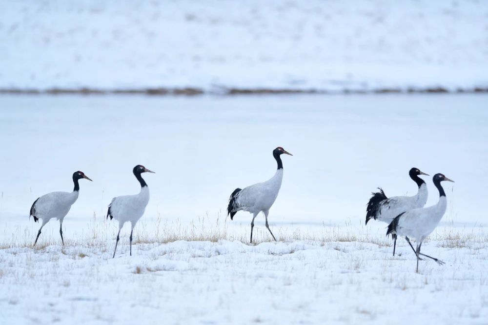 在位于青海省的三江源國家公園黃河源園區(qū)內(nèi)拍攝的黑頸鶴。張龍 攝
