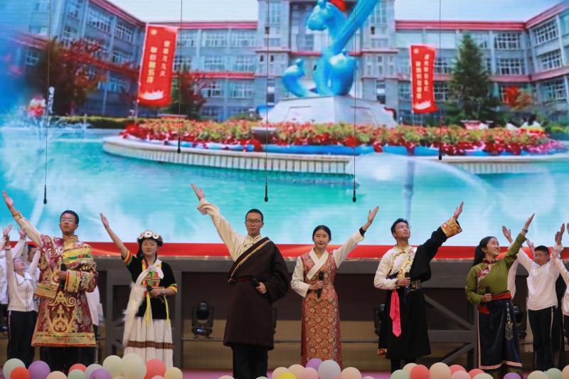 活動(dòng)中,受邀領(lǐng)導(dǎo)嘉賓、廣大師生共同觀看了州民中40年發(fā)展歷程紀(jì)實(shí)片《四十芳華桃李情》、民族團(tuán)結(jié)專題片《團(tuán)結(jié)花開香溢雪域》。州民中師生及校友、州歌舞團(tuán)演員等還為大家?guī)砹司实母栉璞硌?,表達(dá)了內(nèi)心的喜悅,為學(xué)校送上祝福。
