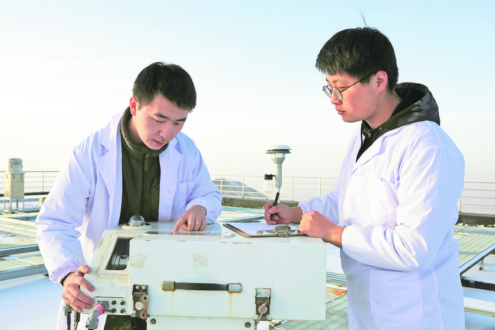 視線回到現(xiàn)在。站上兩名“95后”團隊成員時聞和楊昊,還有一名“00后”成員胡成戎,每天從檢查儀器開始,記錄數(shù)據(jù)、更換采樣膜、采集大氣樣本……他們的工作在旁人看來簡單而枯燥,但專業(yè)人士都知道,這項工作極為重要。如果觀測數(shù)據(jù)不準(zhǔn)確、不連續(xù),將對后續(xù)氣候變化研究和決策判斷產(chǎn)生誤導(dǎo),所以,容不得半點馬虎。
