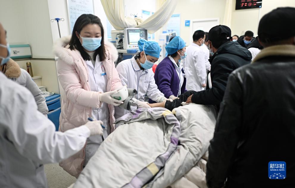 12月19日,一名地震傷員在青海省海東市民和回族土族自治縣人民醫(yī)院接受救治。記者從青海省委宣傳部和青海省應(yīng)急管理廳等部門獲悉,甘肅積石山6.2級地震波及鄰省青海,截至19日凌晨4時,已造成青海省海東市9人遇難,124人受傷。新華社記者 張宏祥 攝