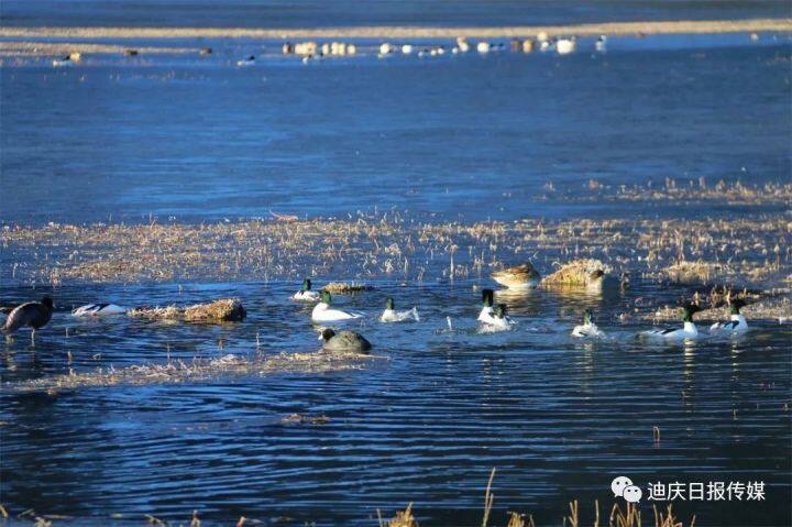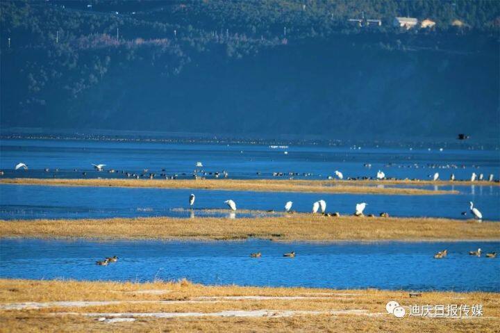 候鳥(niǎo)們一會(huì)兒在水面嬉戲覓食