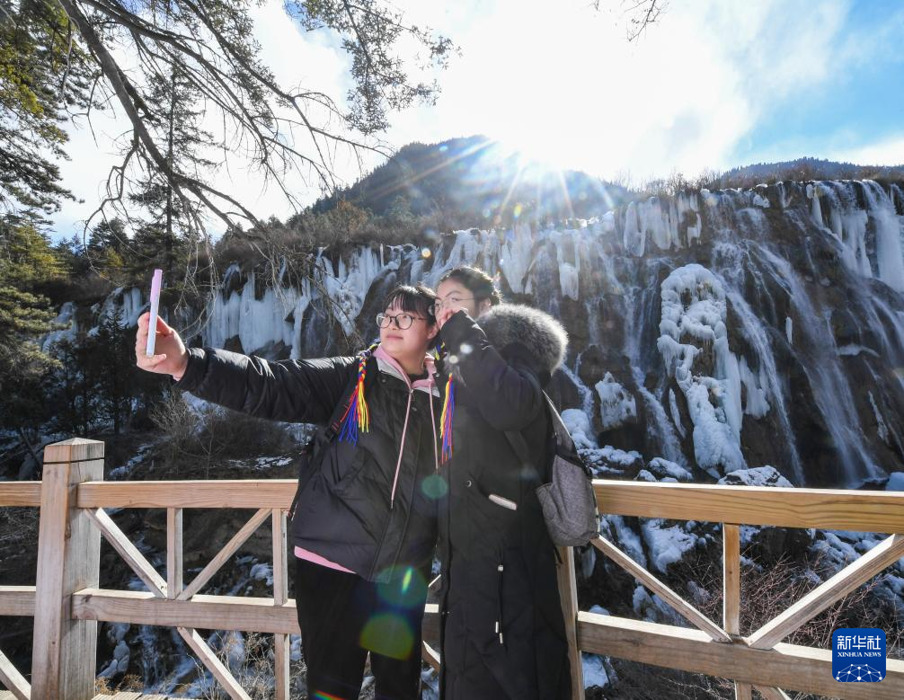 1月4日,中國(guó)九寨溝第十九屆國(guó)際冰瀑旅游節(jié)開幕式在四川九寨溝風(fēng)景名勝區(qū)舉行。景區(qū)內(nèi)特有的藍(lán)色冰瀑,在冬日暖陽的照射下氤氳著水汽,讓游客沉浸于九寨溝的冬季魅力。