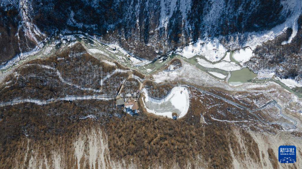 這是1月10日拍攝的海螺溝月亮湖(無人機(jī)照片)。新華社記者 胥冰潔 攝