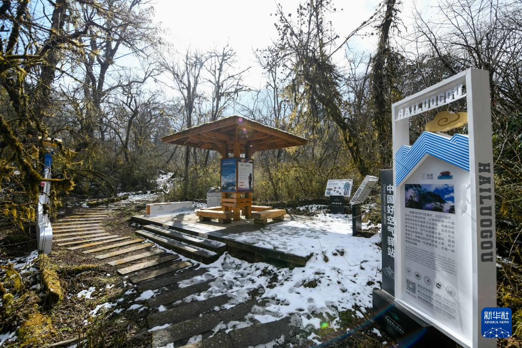 這是1月10日拍攝的海螺溝景區(qū)草海子步游道一角。景區(qū)重建時在步游道上新增了信息提示牌,供游客更好地認(rèn)識海螺溝。新華社記者 胥冰潔 攝