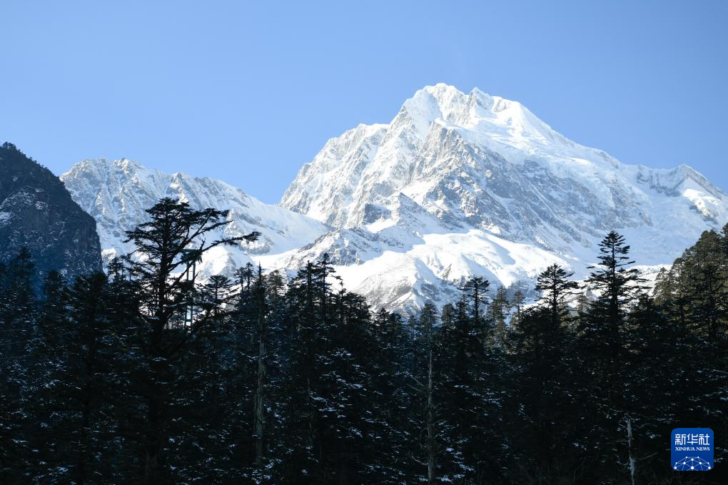 這是1月10日拍攝的從海螺溝景區(qū)遠(yuǎn)眺貢嘎冰川。新華社記者 胥冰潔 攝