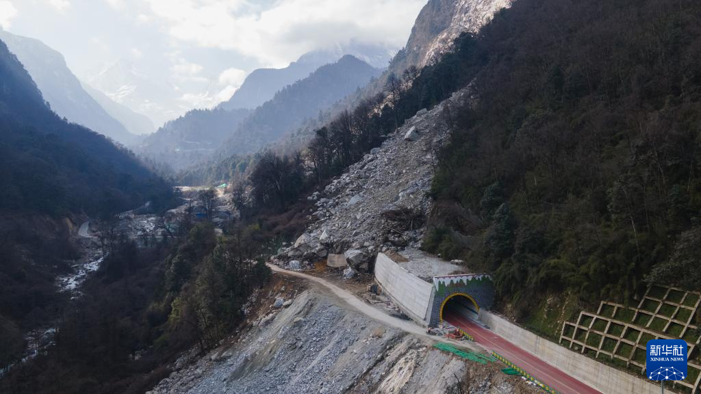 這是1月10日拍攝的海螺溝景區(qū)公路上一處新建的隧道(無人機(jī)照片)。景區(qū)重建時,避開地質(zhì)災(zāi)害點(diǎn)新建了4個隧道,抗災(zāi)能力得到提升且縮短了通往景區(qū)的時間。新華社記者 胥冰潔 攝