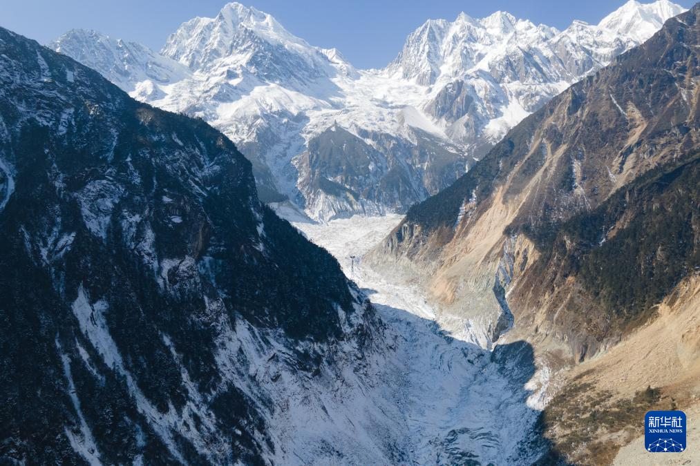這是1月10日拍攝的海螺溝冰川(無人機(jī)全景照片)。新華社記者 胥冰潔 攝