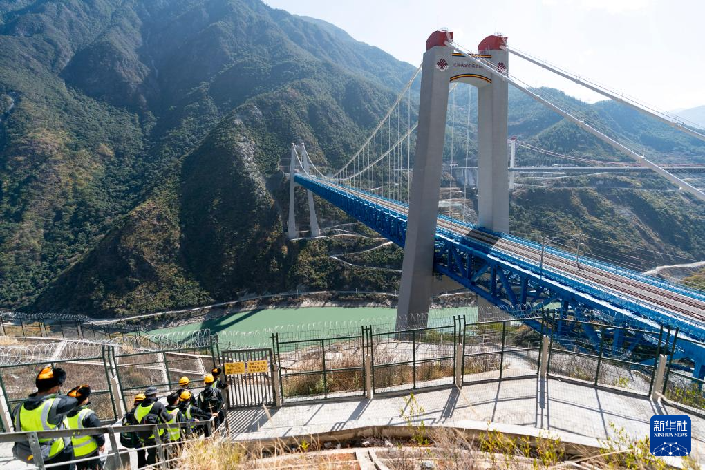 云南麗江至香格里拉鐵路(麗香鐵路)即將迎來(lái)開(kāi)通后的首個(gè)春運(yùn),為確保旅客平安出行,國(guó)鐵昆明局廣通工電段新尚綜合維修工區(qū)班對(duì)虎跳峽金沙江鐵路大橋進(jìn)行全面“體檢”。