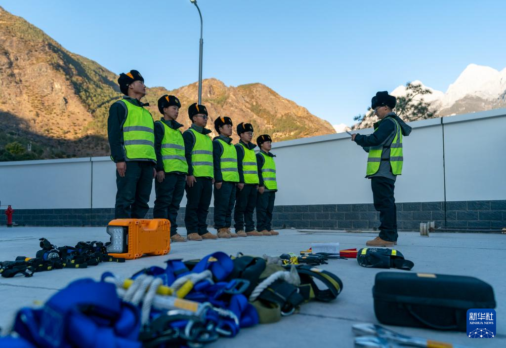 1月24日,工區(qū)班長(zhǎng)楊應(yīng)文(右一)在清點(diǎn)人數(shù)并強(qiáng)調(diào)注意事項(xiàng)。新華社記者 陳欣波 攝