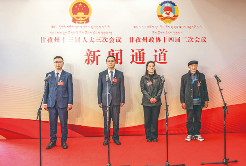 1月30日下午,甘孜州十三屆人大三次會議“代表通道”正式開啟。瀘定縣委副書記、縣長王蕾,得榮縣日雨鎮(zhèn)黨委書記江潔,亞丁景區(qū)管理局游客服務(wù)科科長余光榮,瀘定縣磨西鎮(zhèn)青岡坪村支部書記、村委會主任呂東才四位州人大代表在現(xiàn)場回應(yīng)社會關(guān)切熱點(diǎn)。