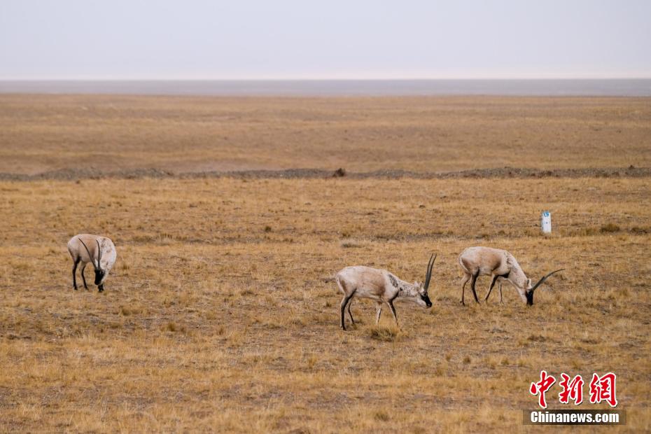 圖為2月20日,藏羚羊群在青藏公路一側(cè)覓食。江飛波 攝