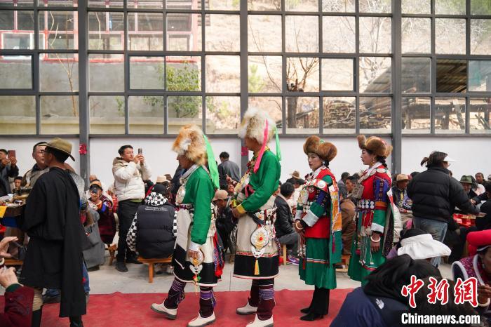 2月20日,賓客通過網(wǎng)絡向外界直播傳統(tǒng)藏式婚禮。中新社記者 劉冉陽 攝