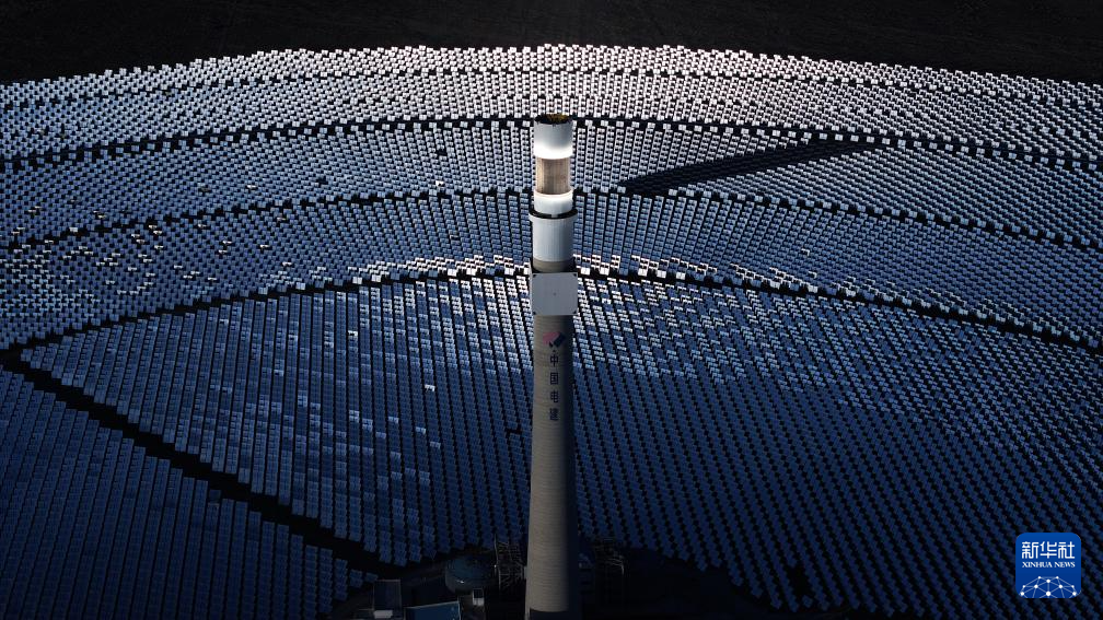 這是2022年6月8日在海西州德令哈市光伏(光熱)產(chǎn)業(yè)園拍攝的光熱電站(無人機照片)。新華社記者 范培珅 攝