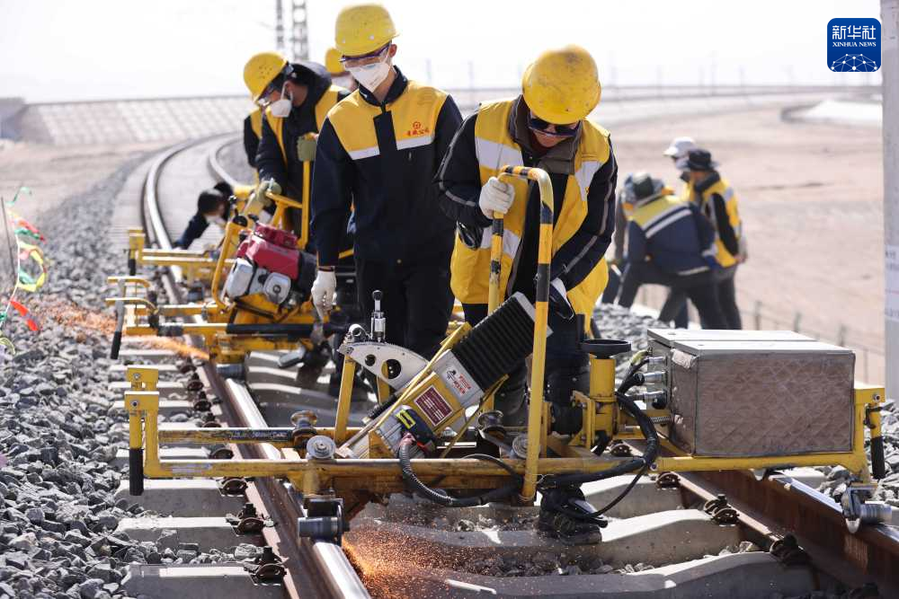 進(jìn)入4月,昆侖山上仍被白雪覆蓋。1日一早,在昆侖山腳下的格庫(kù)鐵路格爾木至格爾木南上行聯(lián)絡(luò)線區(qū)間防護(hù)欄外,中國(guó)鐵路青藏集團(tuán)有限公司格爾木工務(wù)段重點(diǎn)維修車間的8名職工正仔細(xì)地檢查裝備,為稍后的鋼軌“拋光”作業(yè)做好準(zhǔn)備。