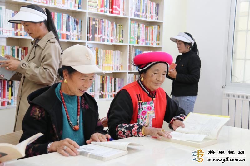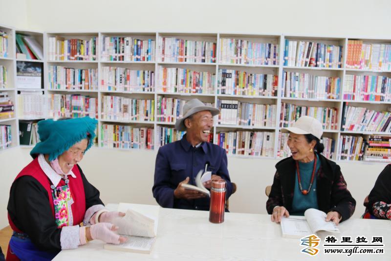 在香格里拉市建塘鎮(zhèn)北郊社區(qū)農(nóng)家書屋,身著民族服飾的老人們安靜地翻閱著各類書籍?!断愀窭锢h志》《中醫(yī)養(yǎng)生》《家常菜做法大全》等書籍讓老人們沉浸在知識的海洋里。