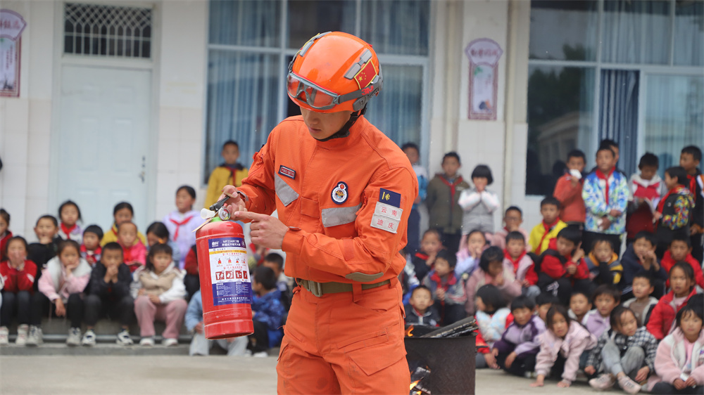 此次演練,迪慶州森林消防大隊(duì)維西駐防分隊(duì)結(jié)合校園設(shè)施實(shí)際和校園消防安全特點(diǎn),著重對發(fā)生地震、火災(zāi)時(shí)如何正確逃生等內(nèi)容進(jìn)行了詳細(xì)講解示范和演習(xí)演練。為讓師生們能夠更直觀地了解掌握滅火器及其操作與使用,活動(dòng)專門設(shè)置了模擬火情,由指戰(zhàn)員現(xiàn)場演示滅火器操作使用,并指導(dǎo)多名師生練習(xí)和操作使用滅火器。