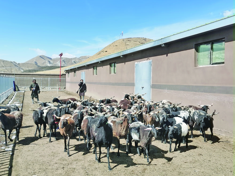 “‘尕瑪頓丹’羊擴繁基地占地面積1.75公頃,有畜棚4座,草料棚1座,病畜隔離室、管理用房、排水渠、堆糞場等一應(yīng)俱全?!奔獾麓妩h支部書記桑斗合加介紹,合作社成立之初,調(diào)動全村牧民參與村集體經(jīng)濟項目創(chuàng)建的積極性,鼓勵大家用牲畜和現(xiàn)金入股,結(jié)果230戶,每戶拿出2000元,眾籌460000元,一次性買進150只“尕瑪頓丹”羊。