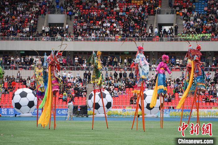 5月18日,“大美青海·高原足球”超級聯(lián)賽在位于西寧市的青海體育中心開幕。聯(lián)賽設(shè)西寧市、海東市、海南州、海北州、海西州、黃南州、果洛州(異地主場)、玉樹州8個賽區(qū),來自青海省各市州的8支參賽隊將進行14輪56場比賽。開幕式現(xiàn)場,舞龍舞獅、社火高蹺等齊上陣,為比賽增色添彩。