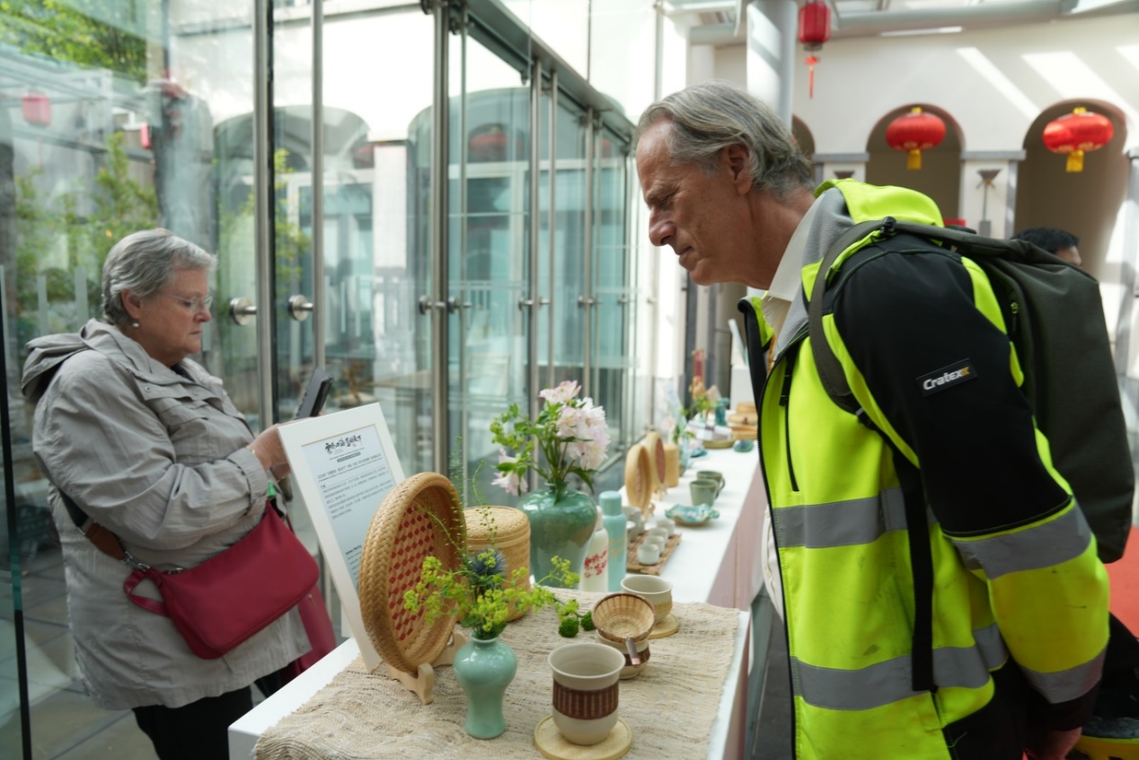 和傳拓技藝一起亮相歐洲的還有經(jīng)緯交錯的指尖藝術(shù)——宜良竹編、色如翡翠的高原綠陶——云南華寧陶等。宜良竹編特有的立體梅花紋,仿若繡花般精細,讓人連連驚嘆。華寧陶獨特的綠釉,似松煙似云霧,美得讓人沉醉。