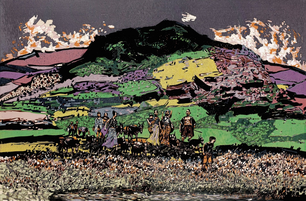 賀昆介紹,20世紀(jì)80年代,一批身處中國(guó)西南邊陲的藝術(shù)家大膽創(chuàng)新,開創(chuàng)一種全新的木刻版畫表現(xiàn)技巧——絕版木刻,并在短時(shí)間內(nèi)震撼中國(guó)畫界。這一技法源自云南,這里接壤緬甸、越南、老撾,26個(gè)世居民族在此形成獨(dú)特而燦爛的本土藝術(shù)文化。