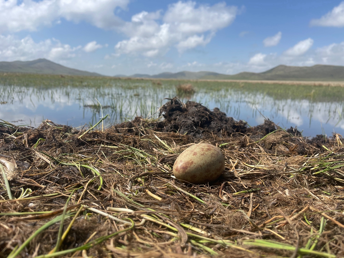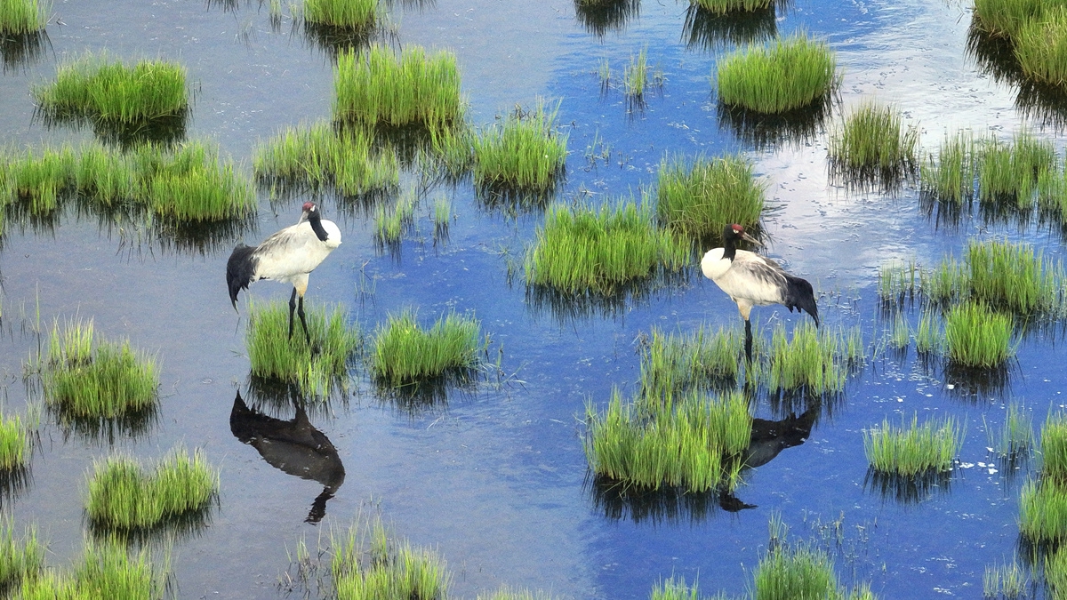 今年3月中旬,首批在云貴高原越冬的黑頸鶴來到若爾蓋濕地國家級自然保護區(qū),在保護區(qū)進行新一輪適應和筑巢后,迎來了繁育期。這對正在產(chǎn)卵的黑頸鶴夫婦是當?shù)氐摹袄吓笥选?,今年已是它們在此連續(xù)繁育的第五個年頭。