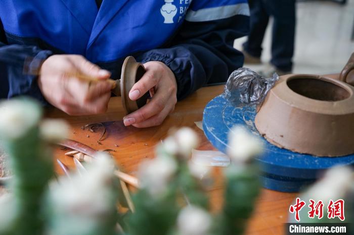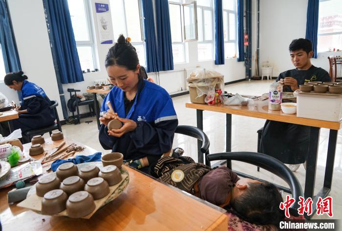 7月18日,在班瑪黑陶培訓(xùn)及體驗(yàn)中心,學(xué)員正在制作班瑪黑陶作品。中新社記者 馬銘言 攝