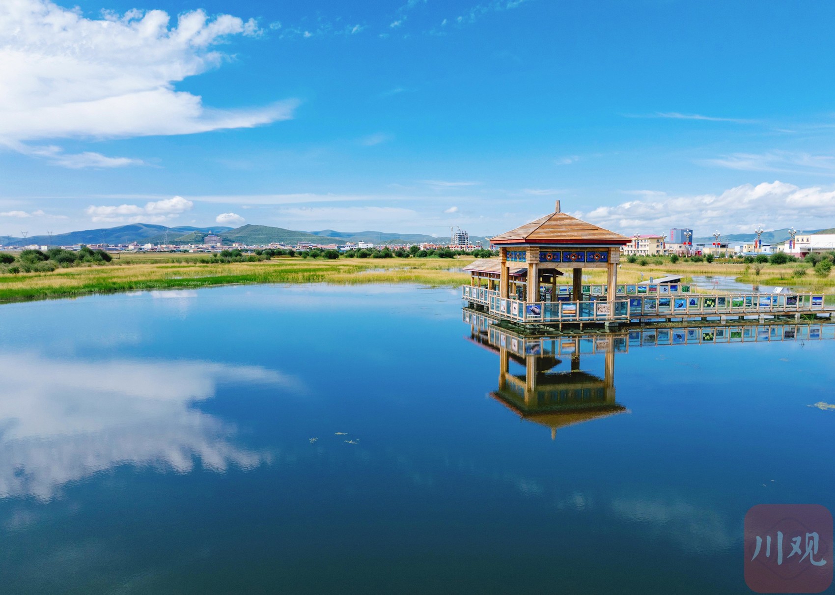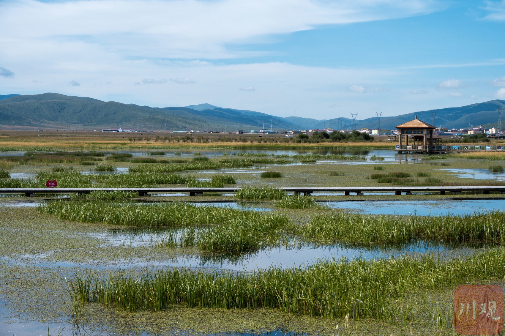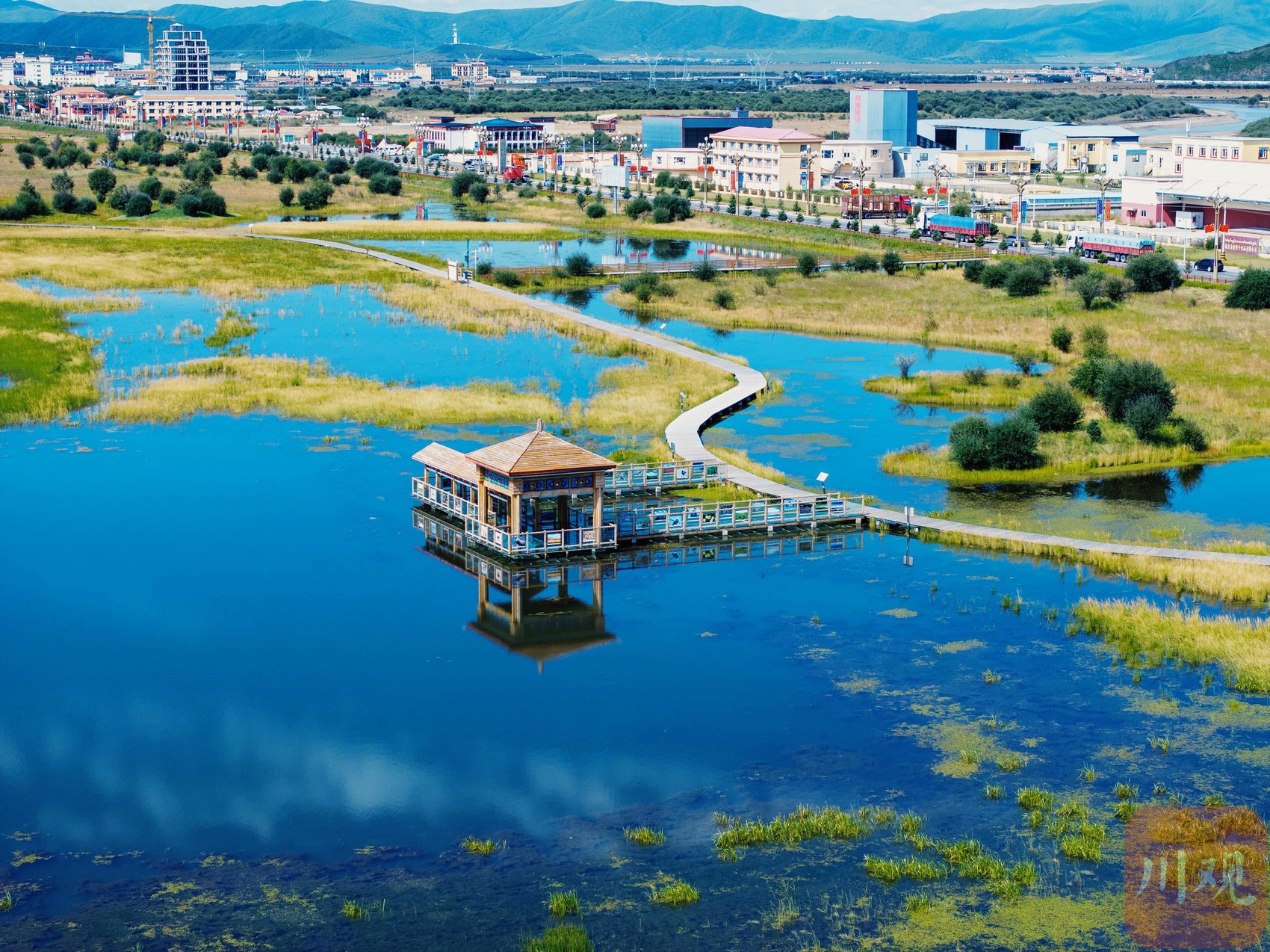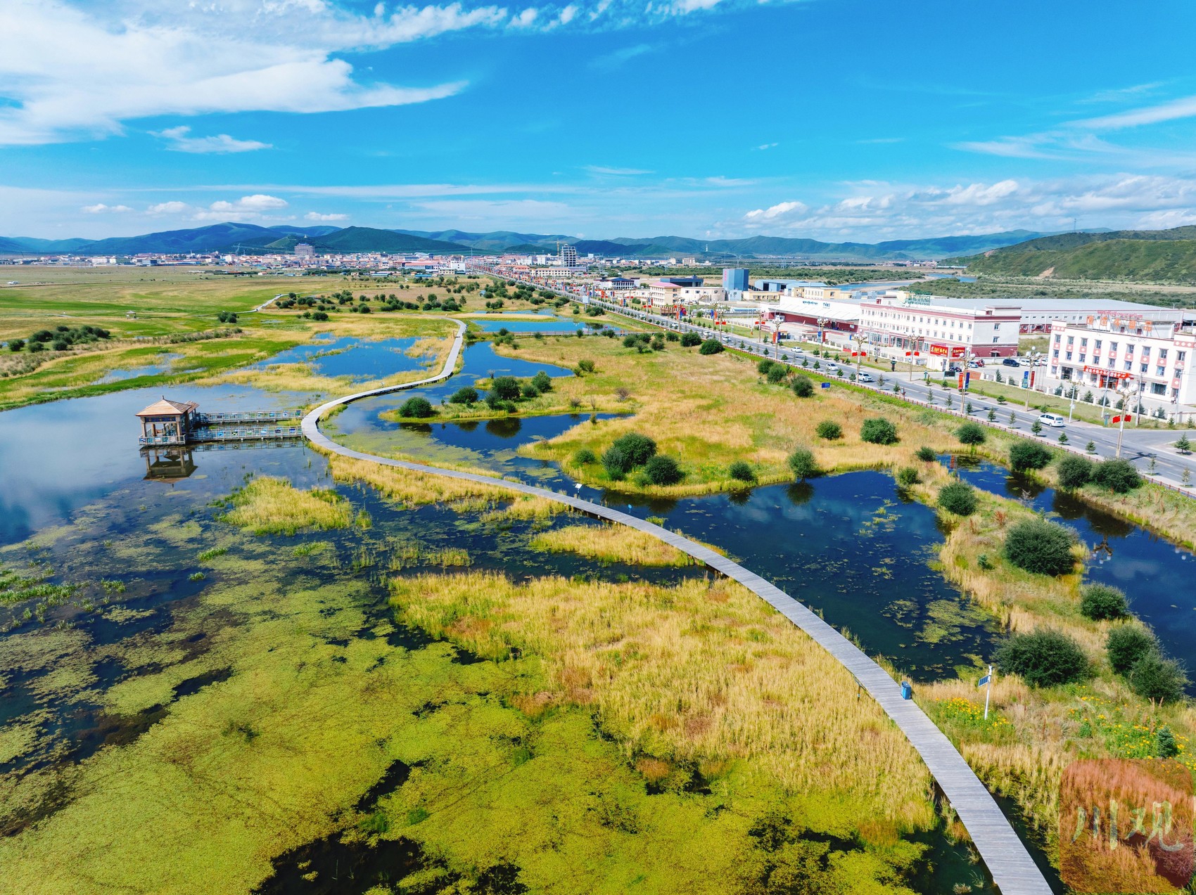 這里原本是一處污水坑。幾年前,紅原縣結(jié)合川西高原生態(tài)脆弱區(qū)綜合治理項目、濕地保護恢復(fù)提升改造項目等重點生態(tài)建設(shè)項目,通過新建擋沙壩、溢流壩、副壩等措施來強化蓄水保濕效果,使得大片濕地植被和生態(tài)系統(tǒng)得到了有效修復(fù),成為了國道旁的新晉打卡景點。