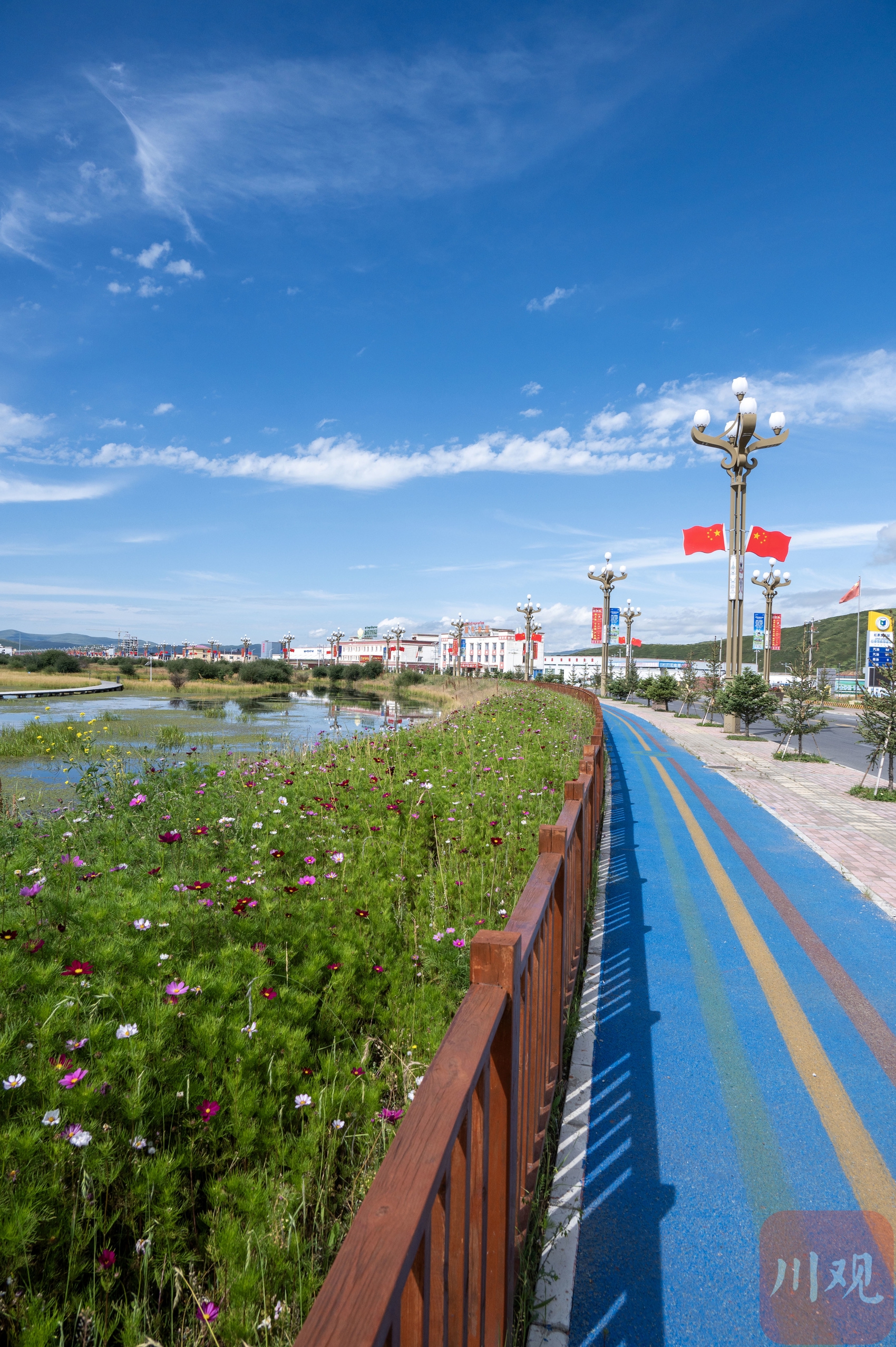 8月18日,天空高遠,風(fēng)光旖旎,國道旁的四川省阿壩藏族羌族自治州紅原縣邛溪鎮(zhèn)熱坤村的邛溪濕地公園已成為眾多游客的熱門打卡點。
