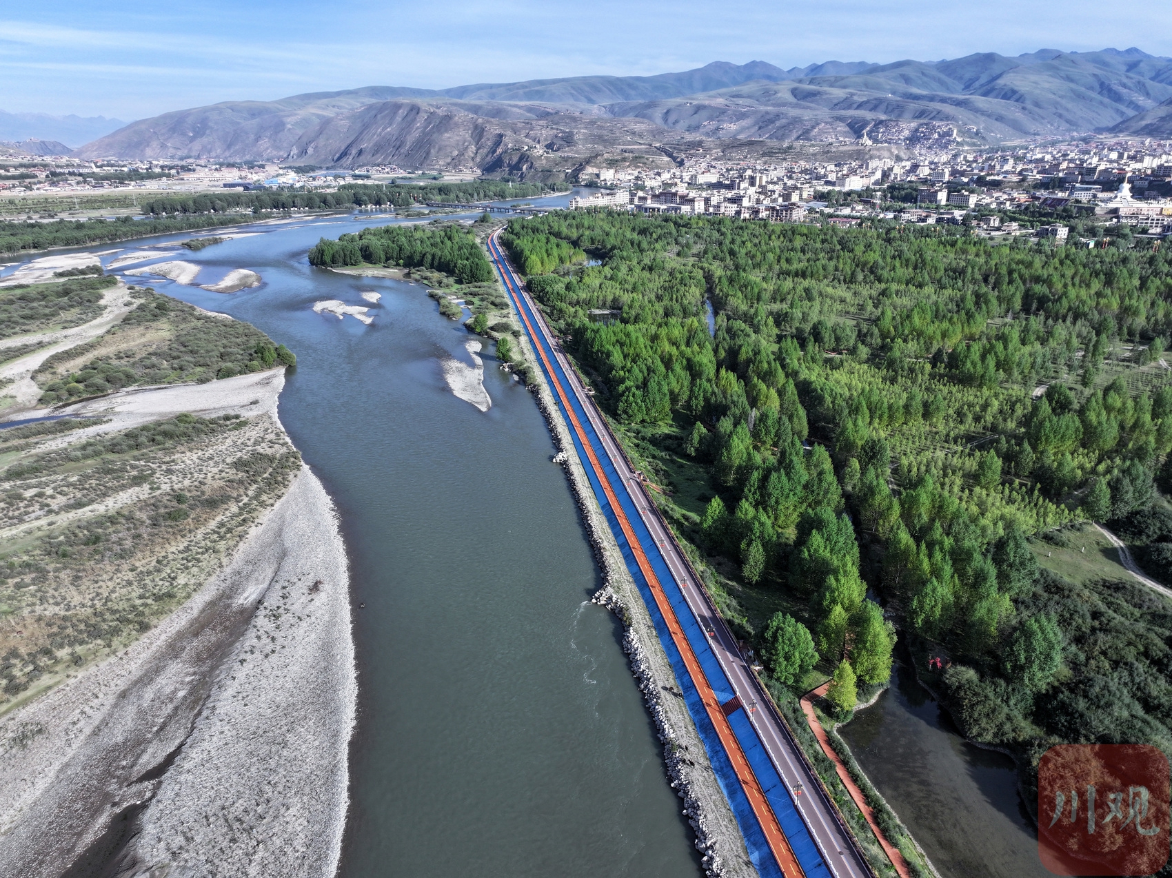 現(xiàn)在的雅礱林卡濕地公園樹木茂盛、水質(zhì)清澈,雅礱江如一條翡翠腰帶貫穿于此,從西北向東南流去,藍(lán)天、白云、雪山掩映下,成為317國道上一道靚麗風(fēng)景。
