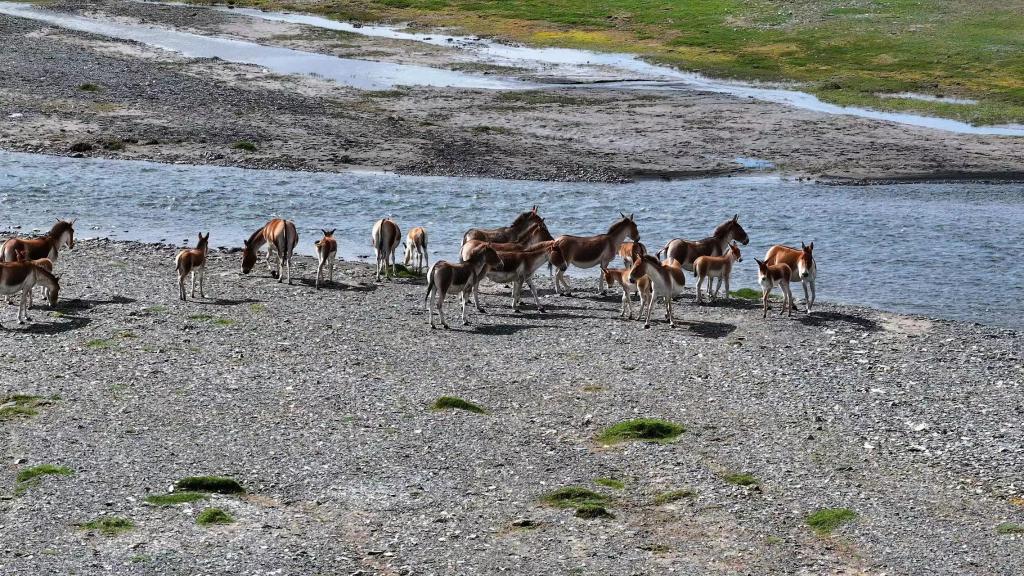 圖為8月9日,在青海省玉樹(shù)藏族自治州曲麻萊縣境內(nèi)拍攝的藏野驢(無(wú)人機(jī)照片)。新華社 昂江 攝
