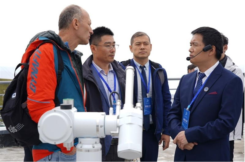 中外專家學(xué)者在瓦里關(guān)全球大氣本底站進(jìn)行現(xiàn)場技術(shù)交流。張琪 攝