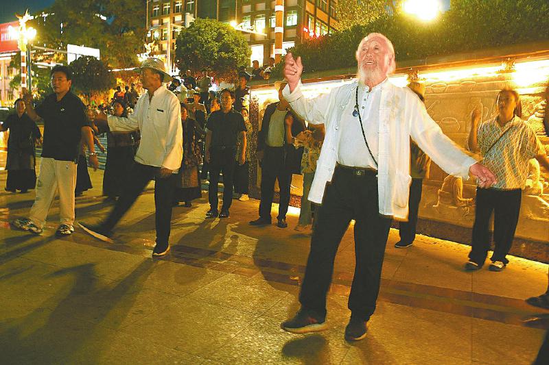8月下旬,四川日報全媒體“向云端——尋路川藏線上的中國”采訪組來到巴塘縣城時,正是傍晚,縣政府旁邊的中山廣場上胡琴聲悠揚,當(dāng)?shù)厝罕妵μ鹆税吞联氂械南易游?,一些外地游客也饒有興致地加入。