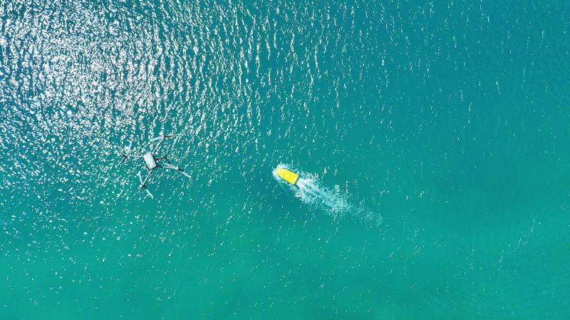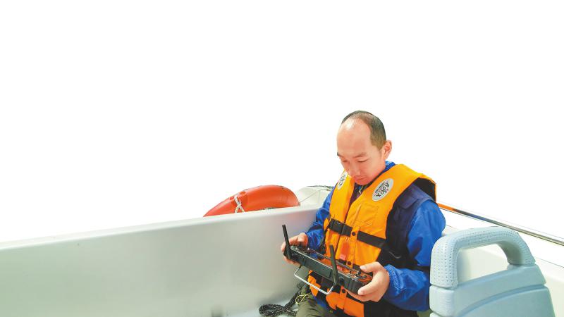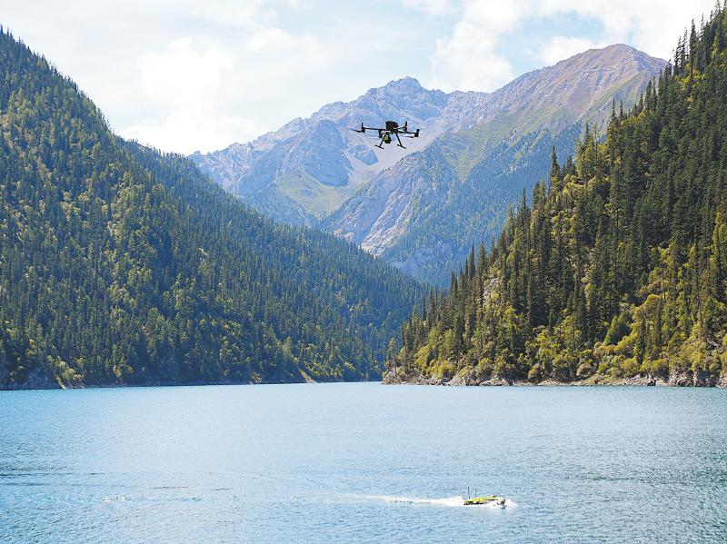 無人船與無人機(jī)相互配合,對九寨溝內(nèi)這個(gè)最大、最深的高山湖泊進(jìn)行水下、水上同步測量。韋維 攝