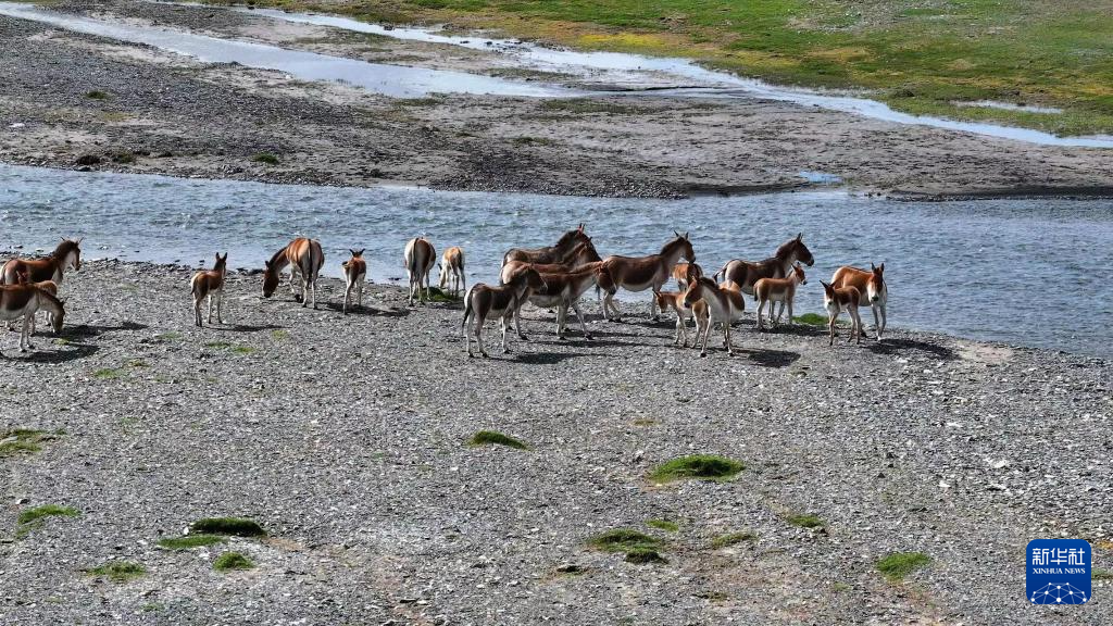 這是8月9日在位于三江源國家公園長江源園區(qū)的曲麻萊縣境內(nèi)拍攝的藏野驢(無人機照片)。 新華社發(fā)(昂江 攝)