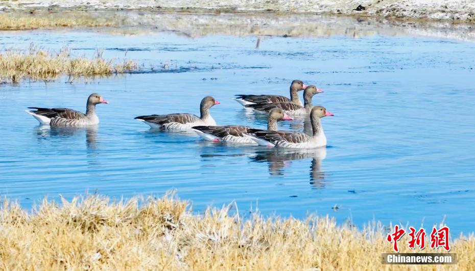 圖為候鳥群在湖中游蕩。王小炯 攝