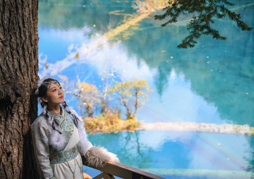 江蘇林女士的新婚蜜月之行便是來到九寨溝,她特意租了傳統(tǒng)藏族服飾、化上了特色妝容,站在五花海的棧道上,身后是碧藍湖水,身側(cè)是林影婆娑?!霸谶@么美的景色之下穿上民族服裝,我想拍出來的照片一定很美!”