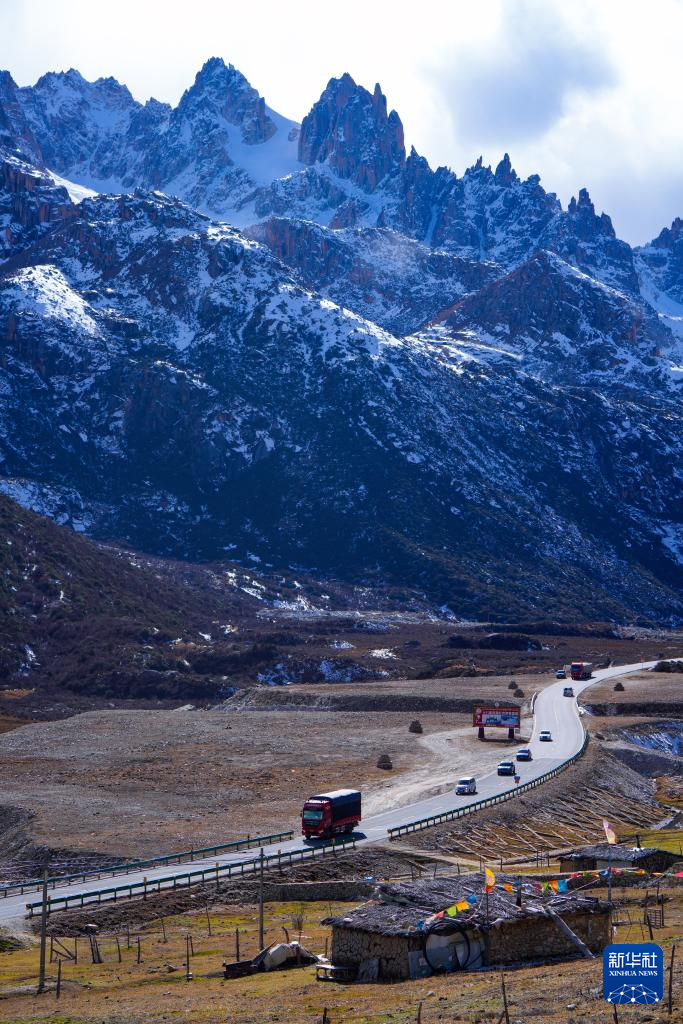 在四川省甘孜藏族自治州德格縣,車輛穿過雀兒山隧道后行駛在國(guó)道317公路上(11月1日攝)。新華社記者 沈伯韓 攝