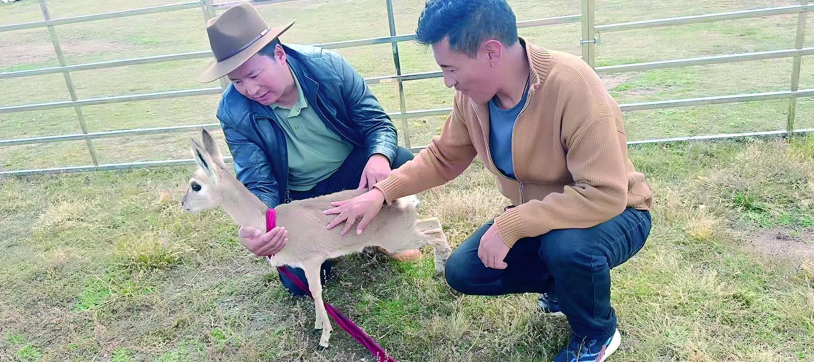 這是10月1日發(fā)生在三江源國(guó)家公園黃河源園區(qū)黃河鄉(xiāng)阿映村的一幕。當(dāng)時(shí),黃河鄉(xiāng)生態(tài)管護(hù)站負(fù)責(zé)人加羊多杰和管護(hù)員本強(qiáng)正在巡護(hù)過(guò)程中,發(fā)現(xiàn)了一只受傷的藏原羚。