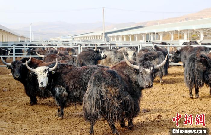 圖為海東市互助縣海盛生態(tài)牧場(chǎng)飼養(yǎng)的牦牛。薛蒂 攝