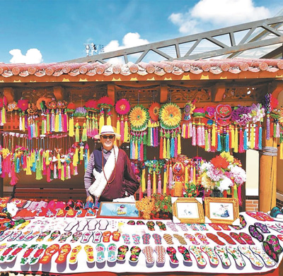在果洛藏貢麻村舉行的綠色農(nóng)畜及文創(chuàng)產(chǎn)品推介會現(xiàn)場。(資料圖片)