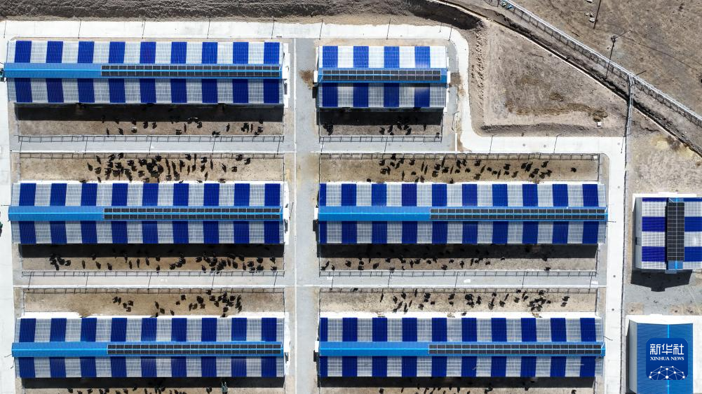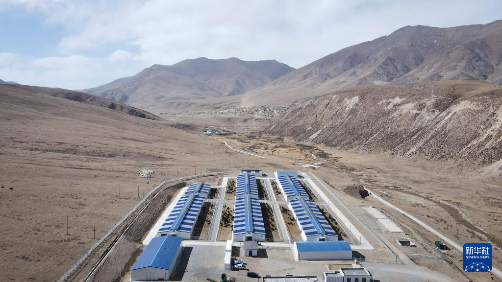 這是4月2日在青海省玉樹藏族自治州玉樹市拍攝的牦牛標(biāo)準(zhǔn)化養(yǎng)殖綜合示范基地(無人機(jī)照片)。新華社記者 齊芷玥 攝