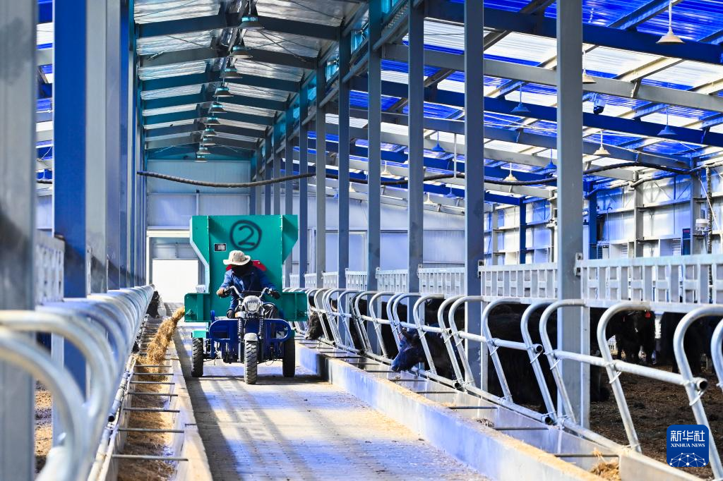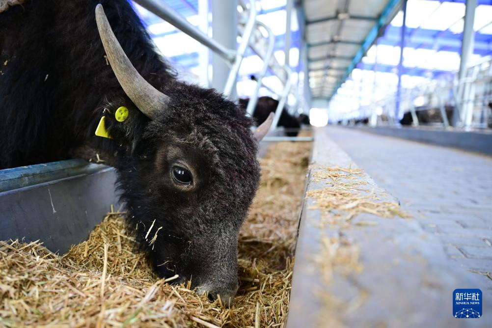 4月2日,工作人員在青海省玉樹藏族自治州玉樹市牦牛標(biāo)準(zhǔn)化養(yǎng)殖綜合示范基地內(nèi)為牦牛補(bǔ)飼。新華社記者 齊芷玥 攝