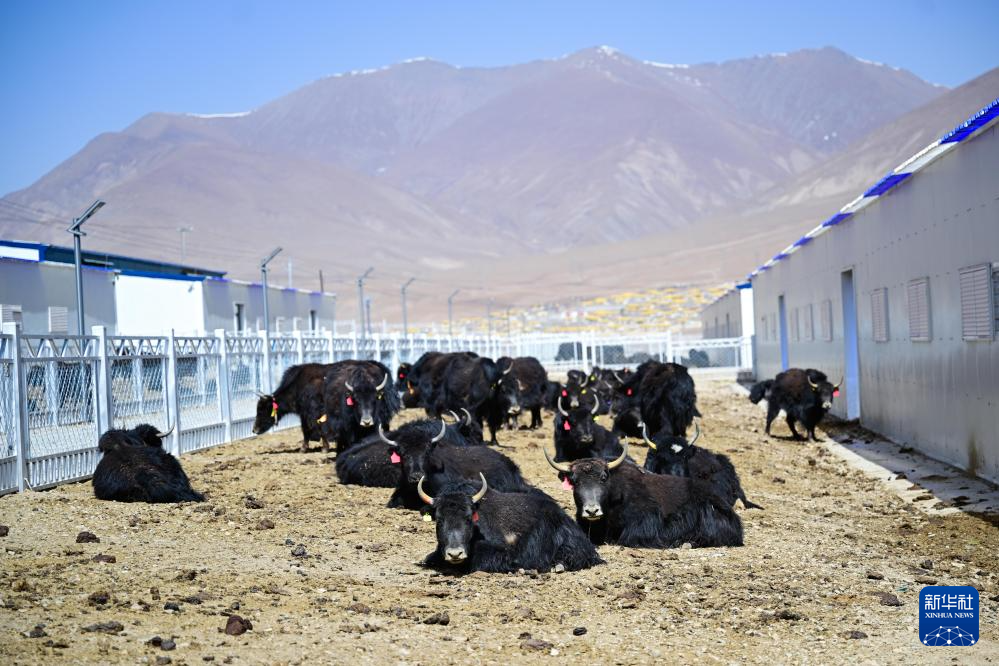 4月2日,在青海省玉樹藏族自治州玉樹市牦牛標(biāo)準(zhǔn)化養(yǎng)殖綜合示范基地,工作人員在查看棚舍。新華社記者 張龍 攝