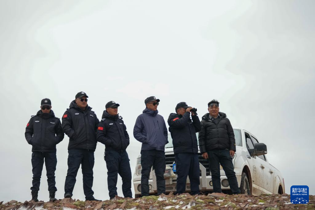 巡山隊(duì)員在可可西里卓乃湖附近巡護(hù)(7月3日攝)。新華社記者 杜笑微 攝