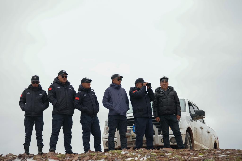 巡山隊(duì)員在可可西里卓乃湖附近巡護(hù)。新華社記者 杜笑微 攝