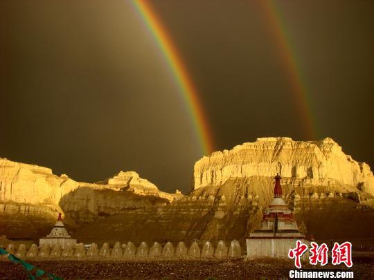 在雨后彩虹的映襯下,扎達(dá)土林顯得格外壯觀。阿里地區(qū)旅發(fā)委供圖